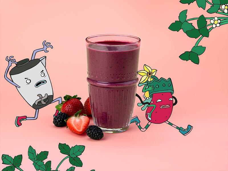 ¿Has oído hablar del término berryception? Es cuando se usan tantas bayas en un batido que tus papilas gustativas pierden su control sobre la realidad. Sabrás de qué estamos hablando cuando hayas probado este batido. Es baya bien. En serio, solo pruébalo.