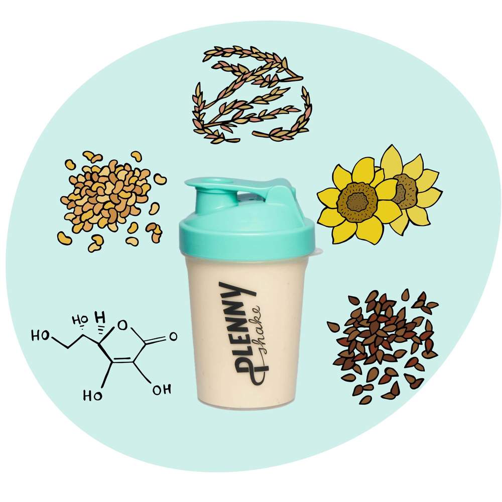 Plenny Shake está hecho de comida real: avena, soja, semillas de lino molidas, aceite de girasol, fruta liofilizada y una mezcla equilibrada de 26 vitaminas y minerales. Si quieres saber más sobre los valores nutricionales del batido Plenny, puedes leer más en nuestro articulo "Big Bags, sois Beautiful".